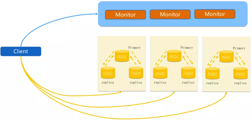 - 主osd数据节点同时写入另外两个副本节点数据。