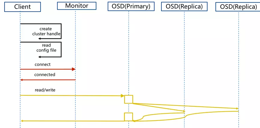 - client 读写io 根据crshmap 算法请求对应的主osd数据节点。