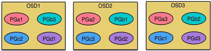 PG到OSD的映射的过程算法叫做CRUSH 算法。(一个Object需要保存三个副本,也就是需要保存在三个osd上)。