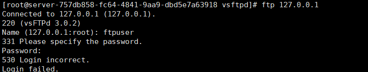 Linux 验证:ftp 127.0.0.1 输入用户名:ftpuser 密码:ftp123456