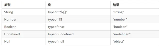 var num = 18; console.log(typeof num) // 结果 number 不同类型的返回值