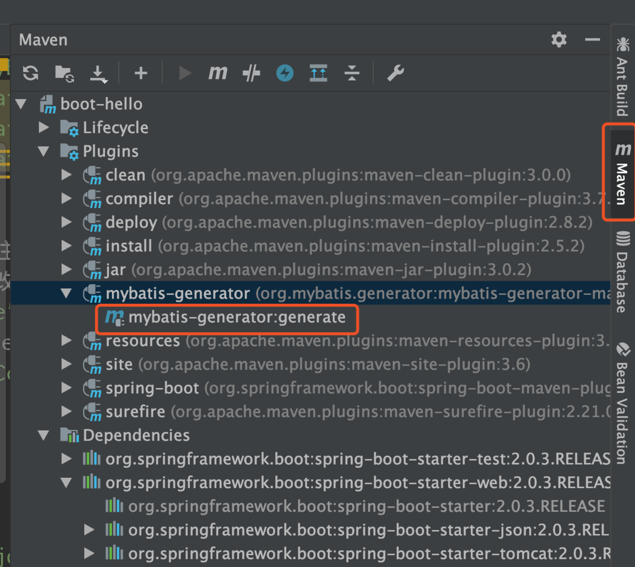 SpringBoot中使用MBG需要在导入MBG依赖的同时导入MBG的启动插件。