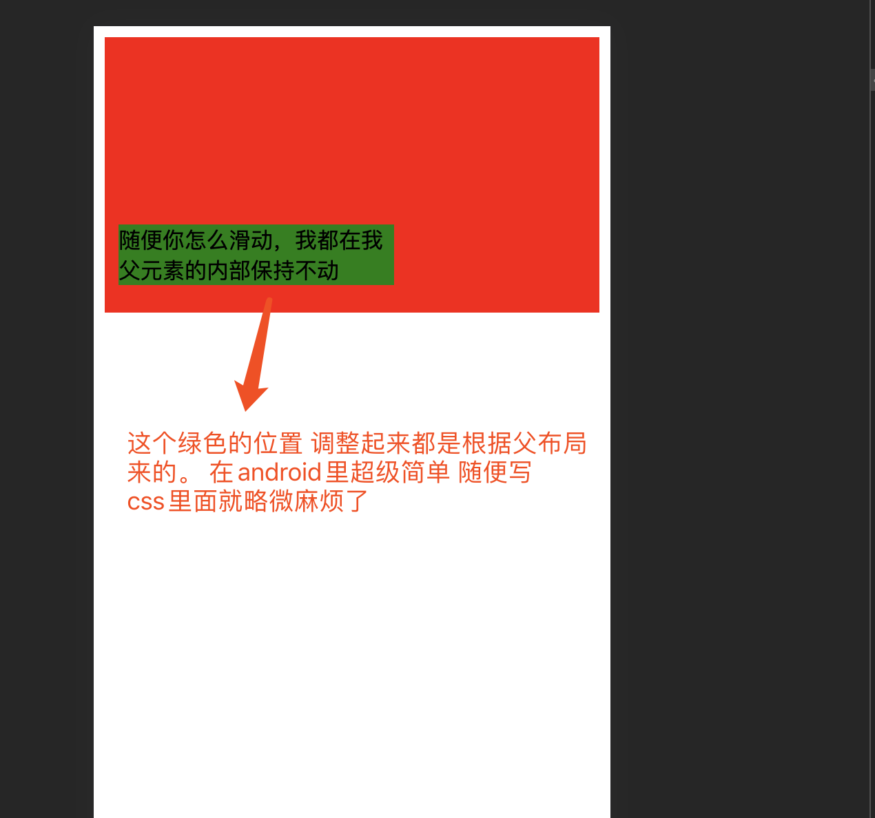 <div class="t2">随便你怎么滑动,我都在我父元素的内部保持不动</div>