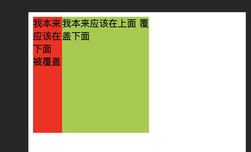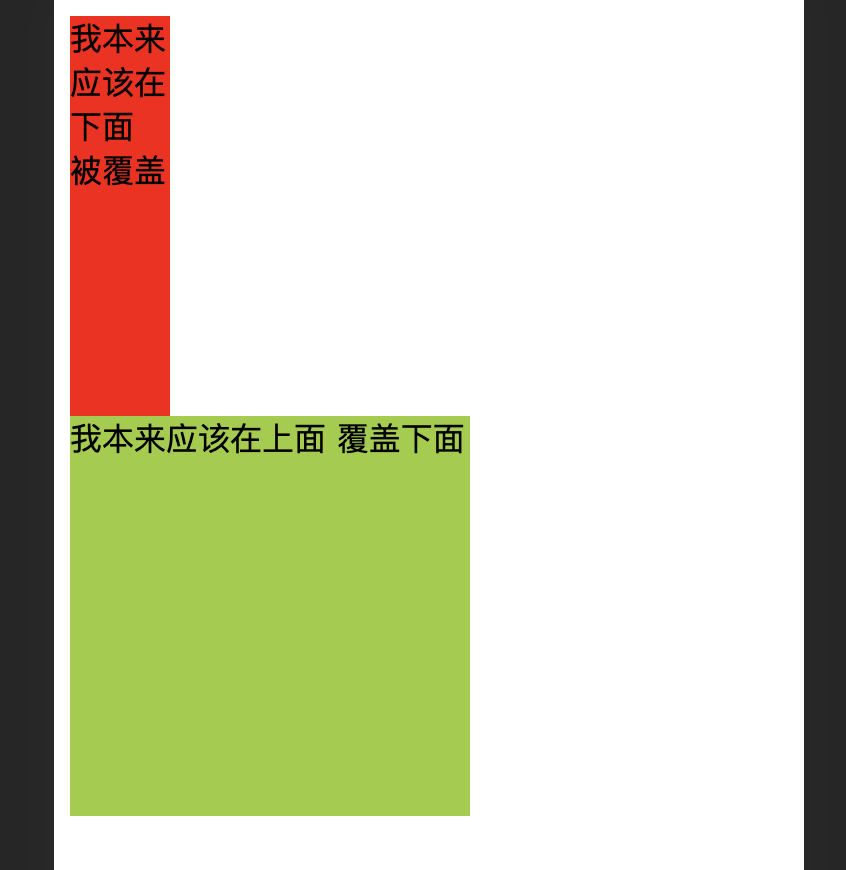 <div class="t2">我本来应该在上面 覆盖下面</div>