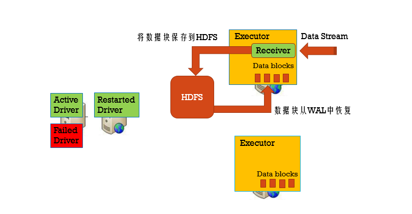 此时我们可以把Driver给恢复回来,可是Driver宕机导致Executor的内存中存在的数据也一并丢失掉了,所以我们也得对这部分数据进行一些容错机制