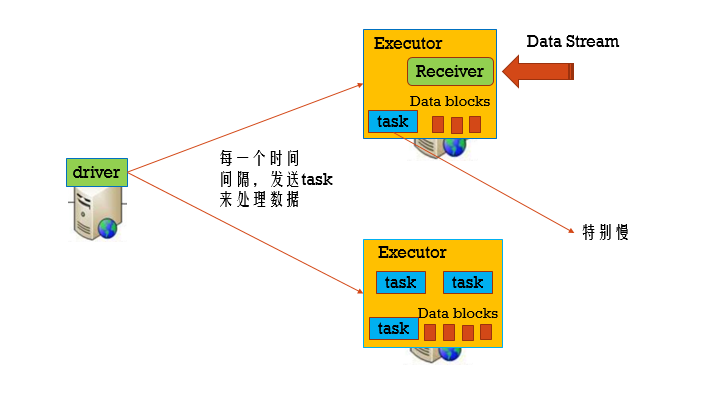 当block块完成生成,就会给Driver返回报告信息,让它得知block们的存在,之后Driver会生成一个个小的任务分发给这些Executor完成。
