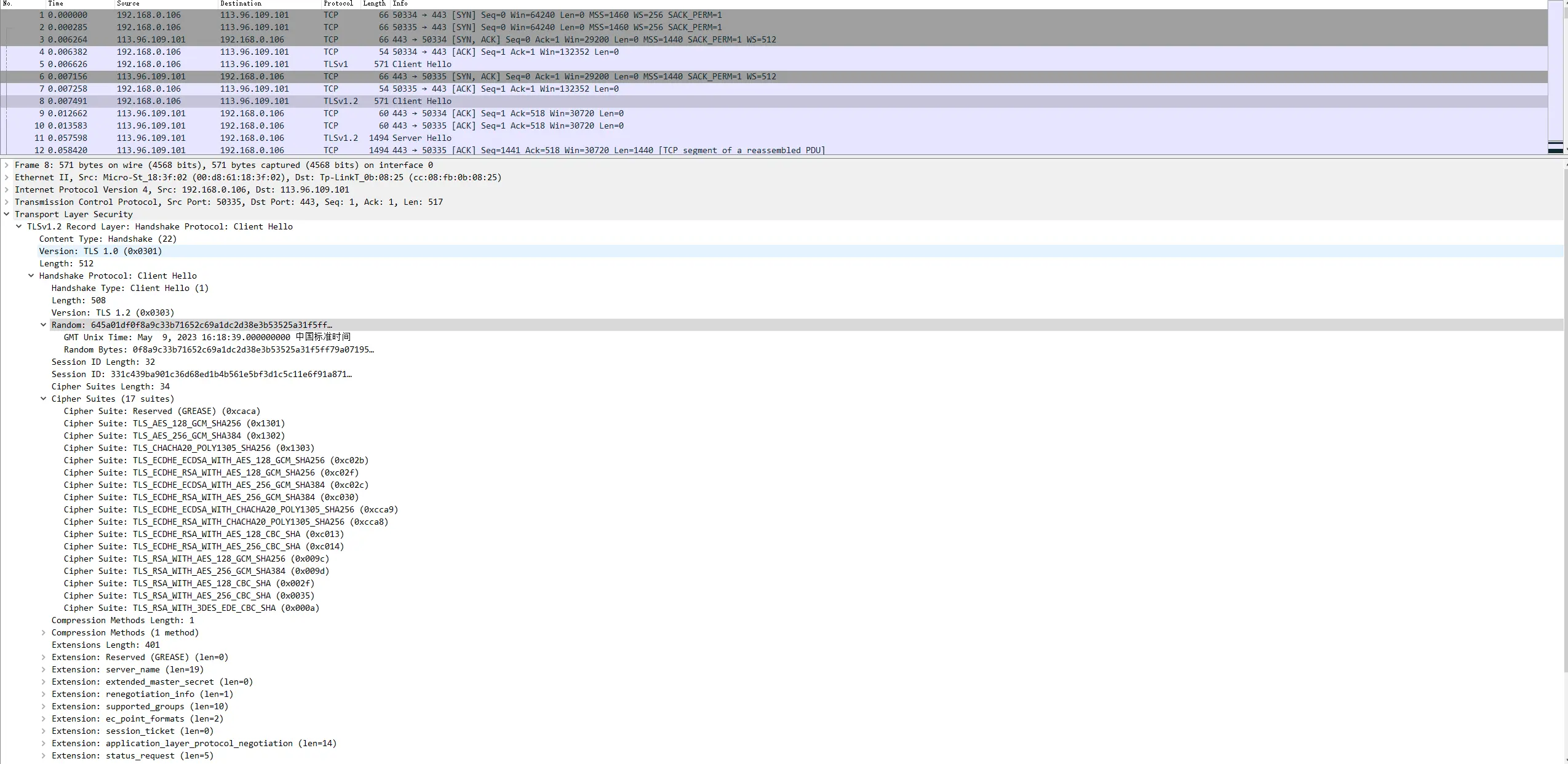 - Client Hello。见上文HTTPS的解决方案第1步;