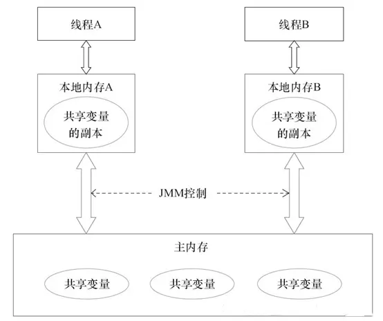 java内存模型的抽象结构 java线程之间的通信由java内存模型控制,也就是JMM。JMM决定一个线程对共享变量的写入何时对另一个线程可见。线程之间的共享变量在主内存中,每个线程都要一个私有的本地内存。本地内存存储了该线程以读/写共享变量的副本。而上图中的共享变量就是exportList。
