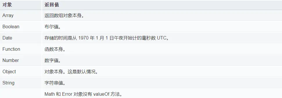 obj.toString()obj.valueOf()不同类型对象的valueOf():