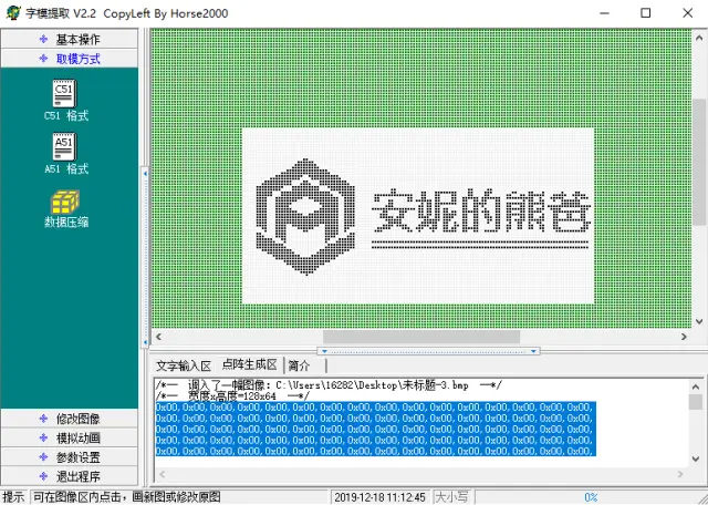 然后将其导入 字模提取 软件中 用C51格式取模即可