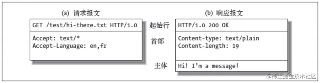 - 主体:空行之后就是可选的报文主体,其中包含了所有类型的数据。请求主体中包括了要发送给Web服务器的数据;响应主体中装载了要返回给客户端的数据。起始行和首部都是文本形式且都是结构化的,而主体则不同,主体中可以包含任意的二进制数据(比如图片、视频、音频、软件程序)。当然,主体中也可以包含文本。
