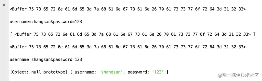 [Object: null prototype] { username: 'zhangsan', password: '123' }, // 注意,这一行变了
