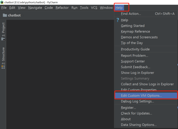 3.在菜单栏 Help中选择 Edit Custom VM Options …