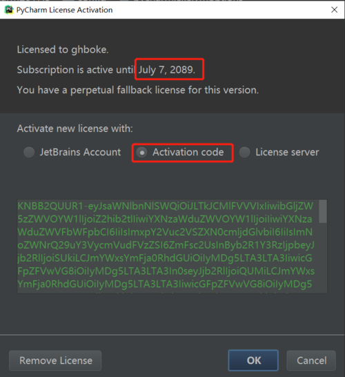2、修改完配置后,需要重启pycharm再输入激活码激活。