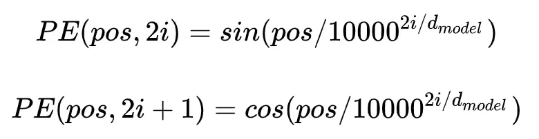 pos 指词语在序列中的位置,偶数位置,使用正弦编码,奇数位置,使用余弦编码。