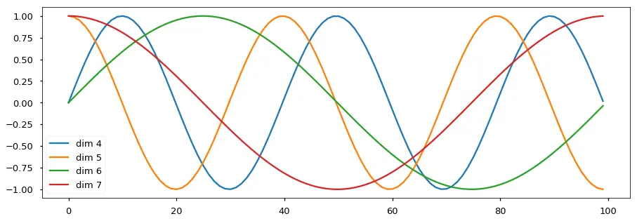 上述公式解释:给定词语的位置 pos,我们可以把它编码成 d_model 维的向量!也就是说,位置编码的每一个维度对应正弦曲线,波长构成了从 到