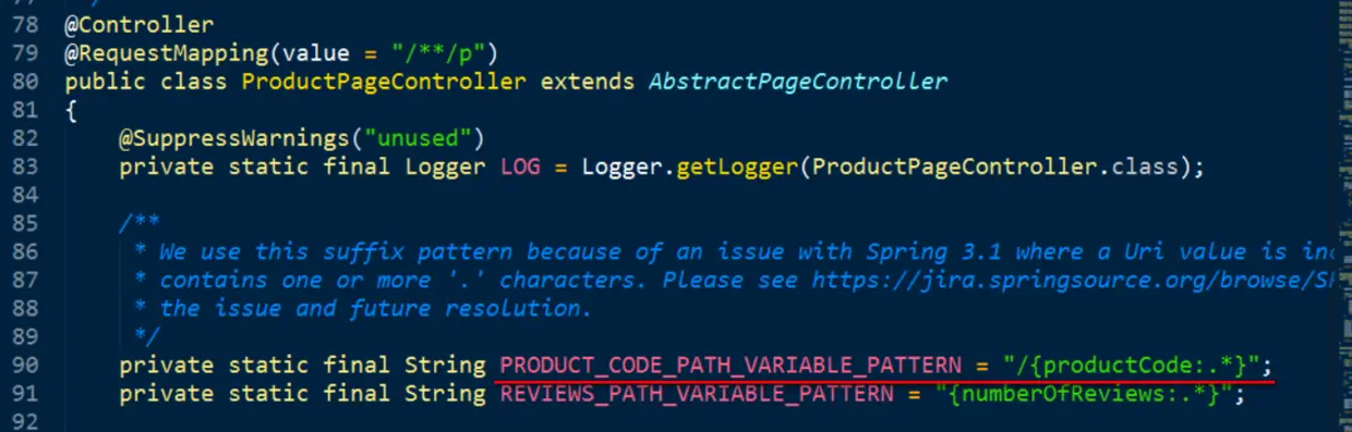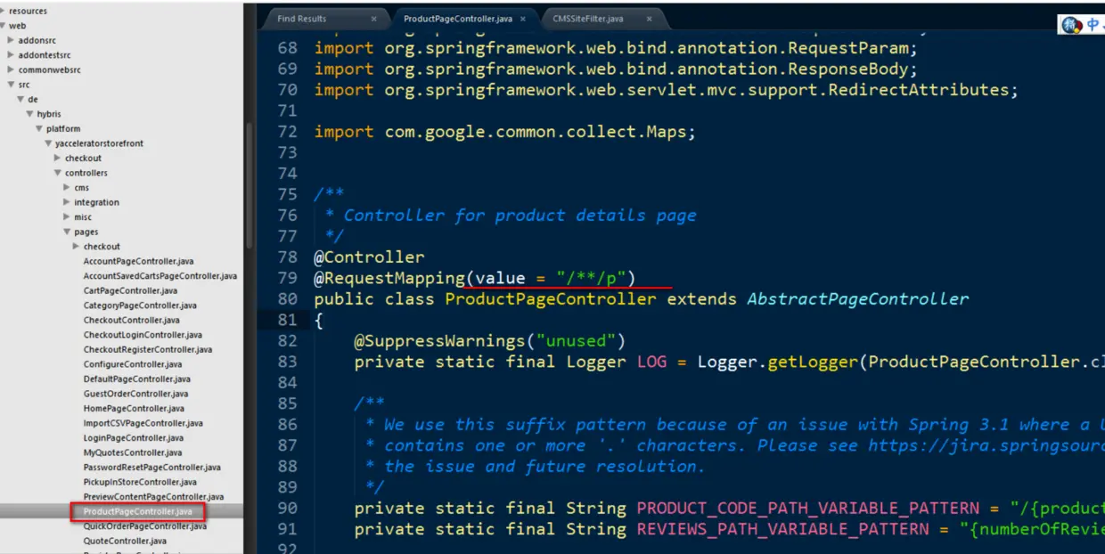 感谢Spring MVC的@RequestMapping, 让上图的url能够自动匹配到下图的ProductPageController。