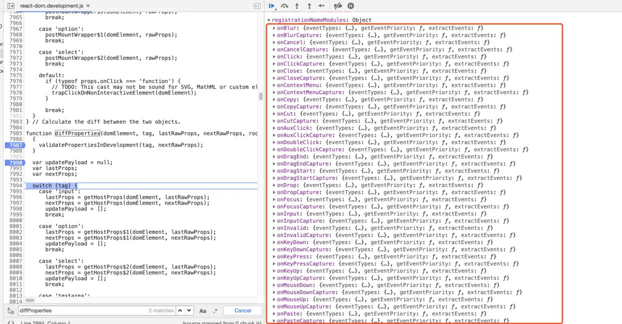 registrationNameModules包含了所有的事件集合,打印出来是这个样子: