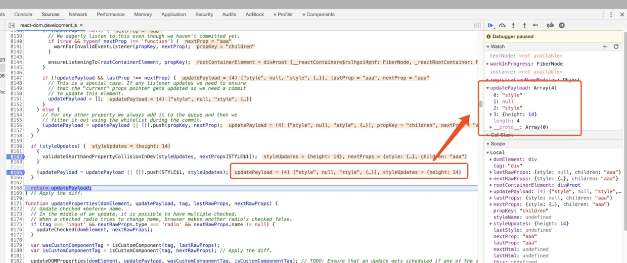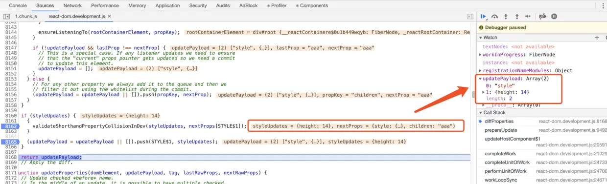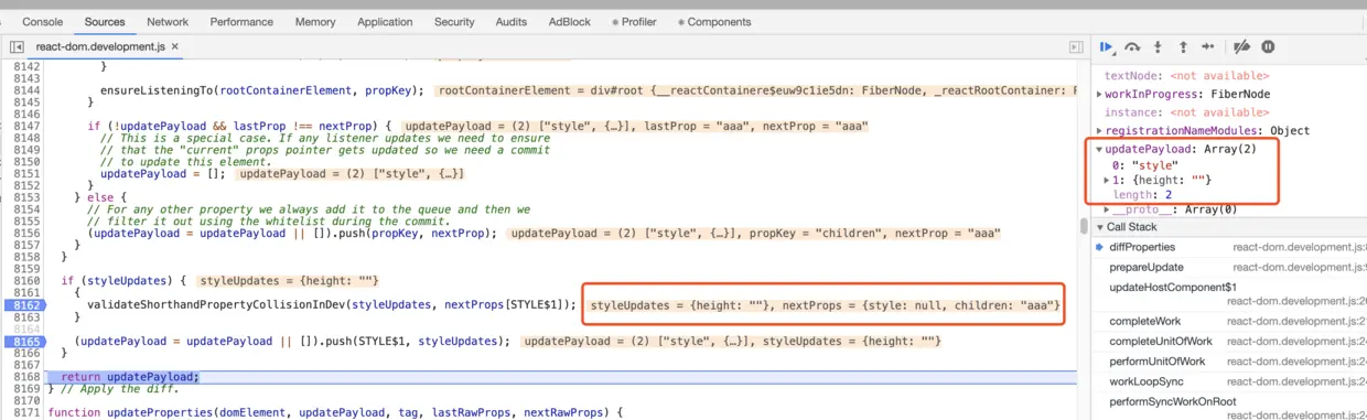 (5) 将有关 style 的更新 push 进 updatePayload 中