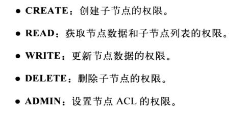 其中尤其需要注意的是,CREATE和DELETE这两种权限都是针对子节点的权限控制。
