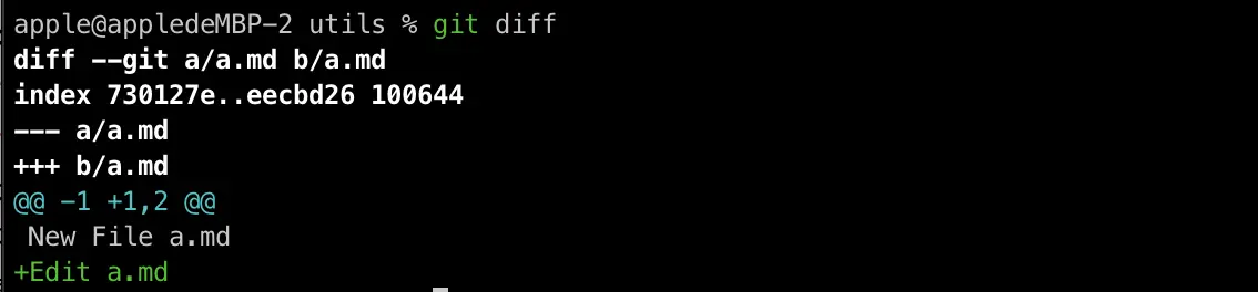 情景一:编辑a.md文件后先不暂存。然后运用git diff