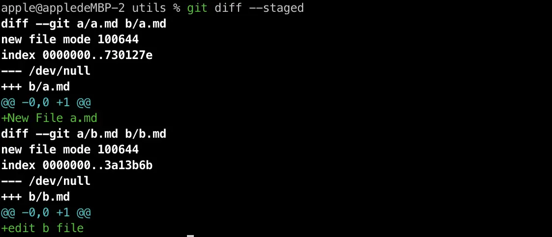 情景二:创建b.md文件后暂存。然后运用git diff --staged
