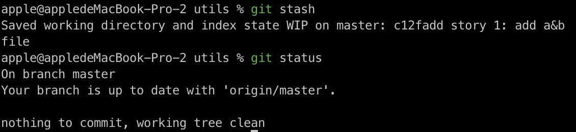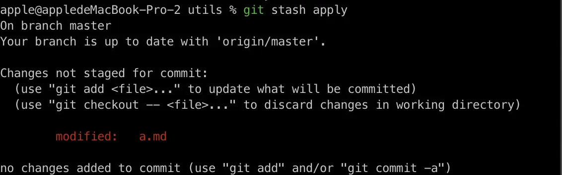 文件的改动被重新应用了,但是之前暂存的文件却没有重新暂存。必须使用 --index 选项来运行git stash apply命令,来尝试重新应用暂存的修改