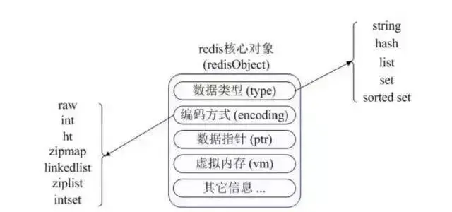 redisObject 最主要的信息如上图所示:type 表示一个 value 对象具体是何种数据类型,encoding 是不同数据类型在 Redis 内部的存储方式。