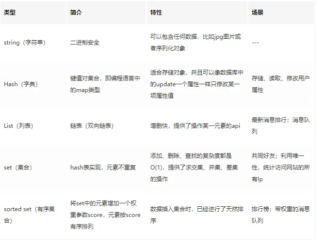 面试官:总结的不错,看来是早有准备啊。刚来听你提到 Redis 支持五种数据类型,那你能简单说下这五种数据类型吗?