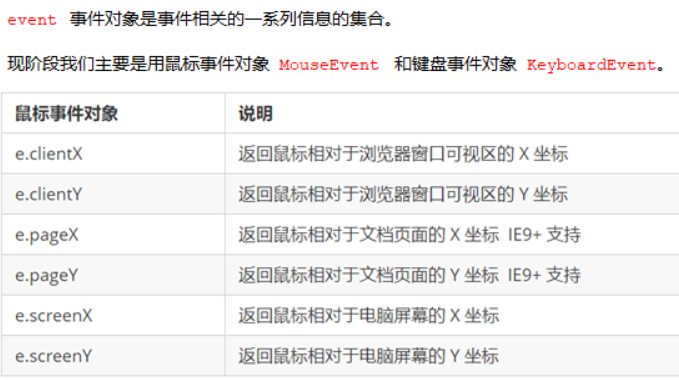 // 3. screen 鼠标在电脑屏幕的x和y坐标