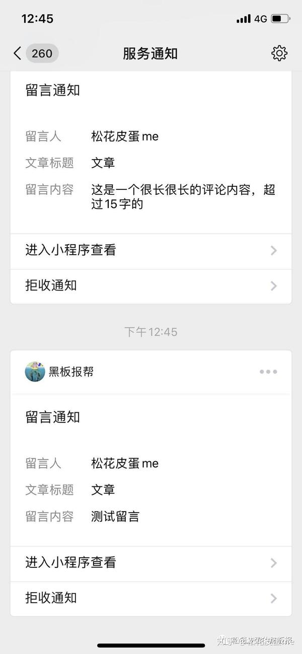 当有新用户留言时,会有服务通知。当然作者回复用户时,用户也能收到通知。