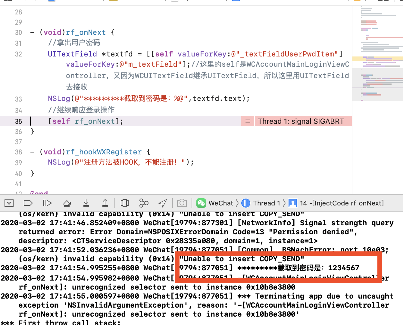 method_exchangeImplementations(onNext_old, class_getInstanceMethod(objc_getClass("WCAccountMainLoginViewController"), @selector(onNext_new)));