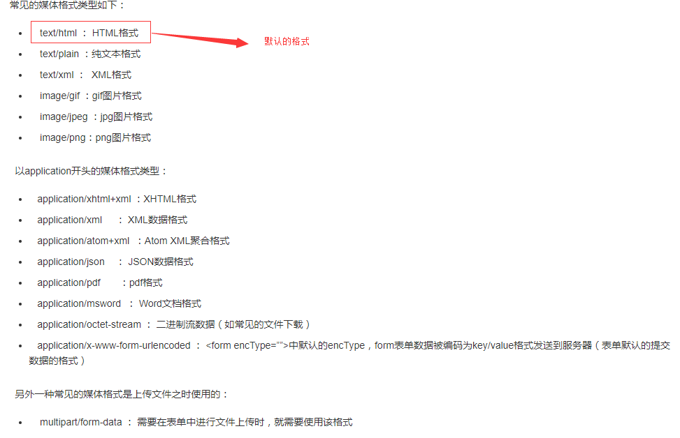 HTTP允许传输任意类型的数据对象.正在传输的类型由Content-Type加以标记.常见的Content-Type的取值如下: