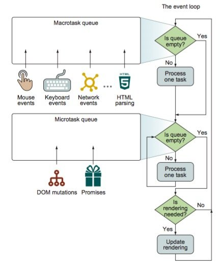 - JS引擎等待任务队列中的任务到来,然后加以处理,一个Tab页(渲染进程)无论什么时候都只有一个JS线程在运行JS程序