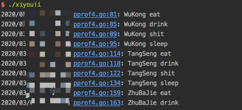 直接在浏览器中执行./xiyouji,便可看到师徒四人一路上的吃喝拉撒。