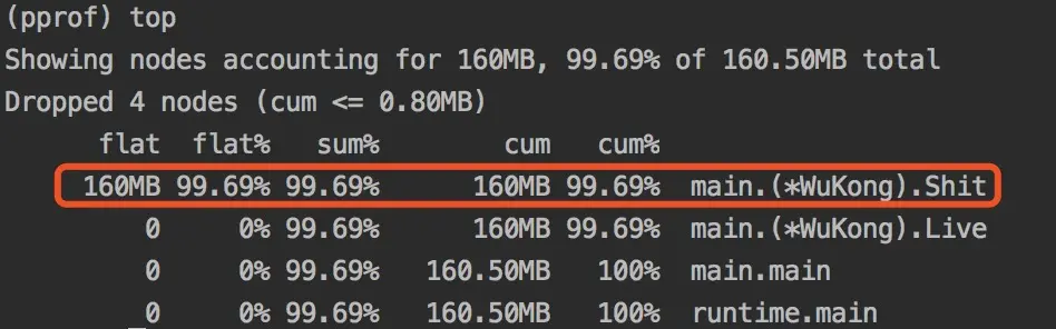 测试分析特别简单,在原有的命令后加上-cpuprofile=cpu.prof或-memprofile=mem.prof就可以得到对应的数据采集文件啦,后面的事对于已经取得真经的你应该懂的