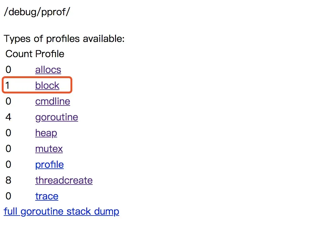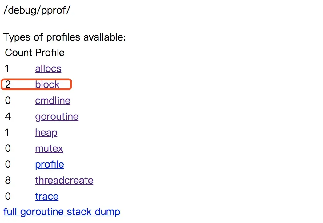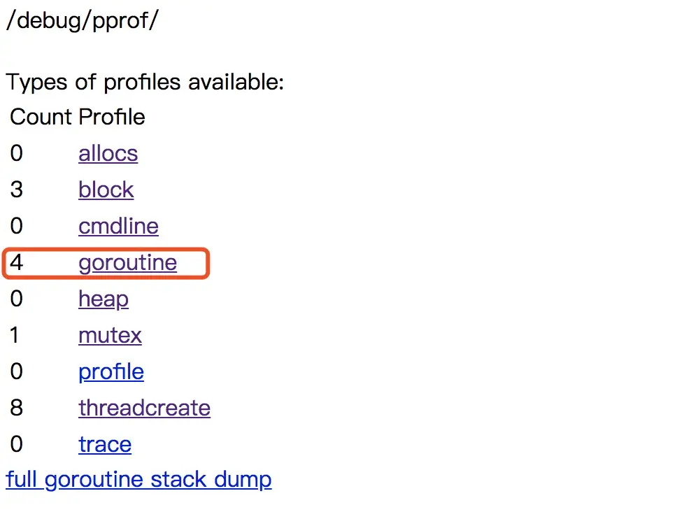 | goroutine | 显示当前所有协程的堆栈信息 |