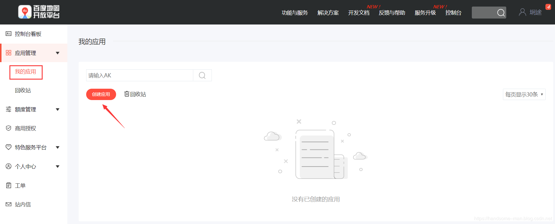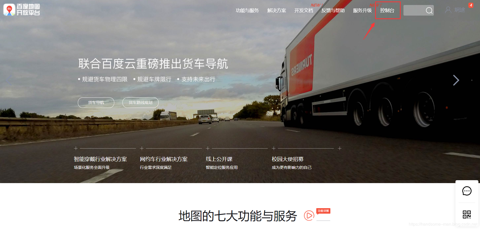 第1步:登录百度地图开放平台,进入控制台,这里说明一下,百度地图开放平台的定位有Web开发、Android开发