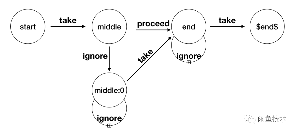 ignore:不满足条件,忽略,进入下一状态。