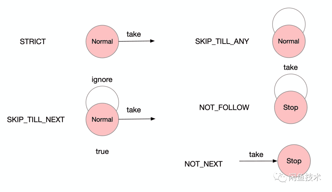 SKIP_TILL_ANY: 不管是否命中条件,都会一直在当前状态循环 -