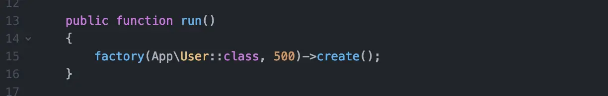 在此示例中使用的是全新的 Laravel 应用程序。如果你使用的是现成的应用程序,可以跳过这一步,但是为了有一些数据来搜索,你可以用 Laravel 的默认用户工厂类来填充用户表。将以下代码添加到您的DatabaseSeeder.php文件: