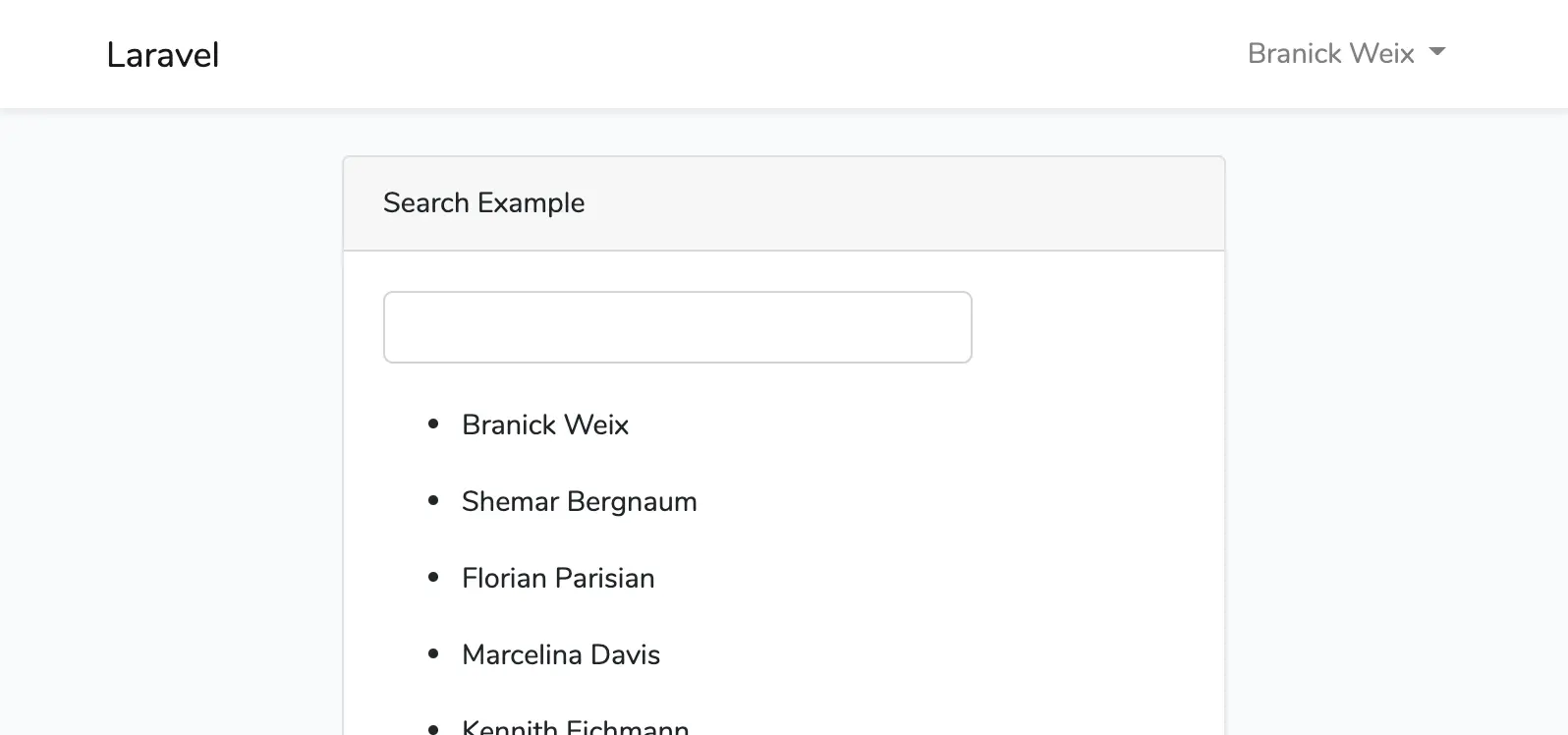 然后运行 php artisan db:seed, 你将有500个用户可以搜索!