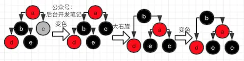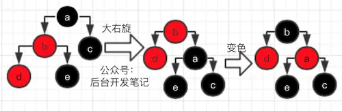 //情况四:左子节点黑,右子节点双重黑,左子节点的左子节点红(LL型):右子节点变黑,大右旋,左节点颜色=右节点