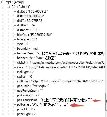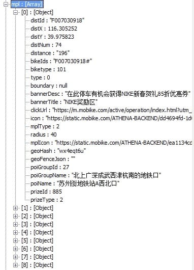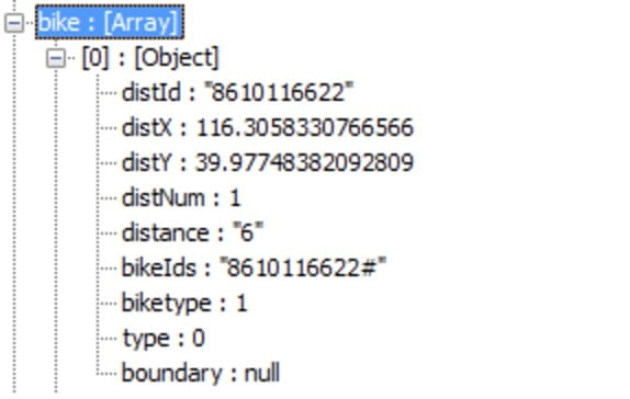 其中包括 bike 和 mpl 数组,bike 即为最终要获取的单车详细信息,结构如下: