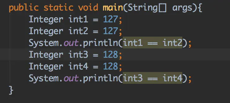 那么问题来了: 为什么会这样呢,大家都知道==是指引用相等,可是int1和int2明明是两个对象为什么是等于呢,既然第一个输出是true,到了第二个输出却是false呢。那就让我们揭开答案