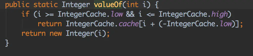- 这里的low是-128,high是127,所以在这个范围内,我们不会去new一个新的对象,会从IntegerCache中拿一个对应的Integer对象(IntegerCache会预先生成-128到127的每个Integer实例).