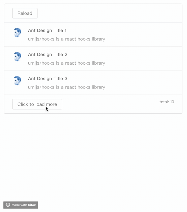 Umi Hooks 听到了你的求救,派出 useLoadMore 来拯救你了。一行代码就可以实现所有的功能!一个小时变一分钟,又可以早点下班了。