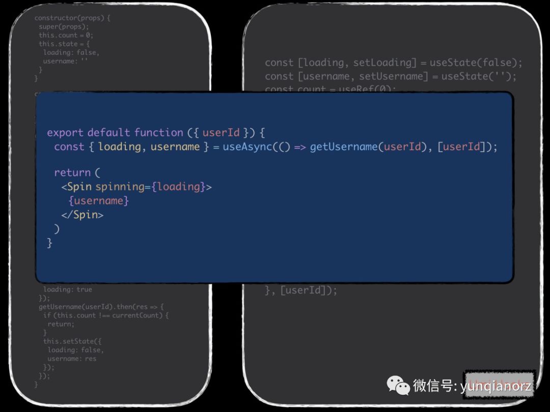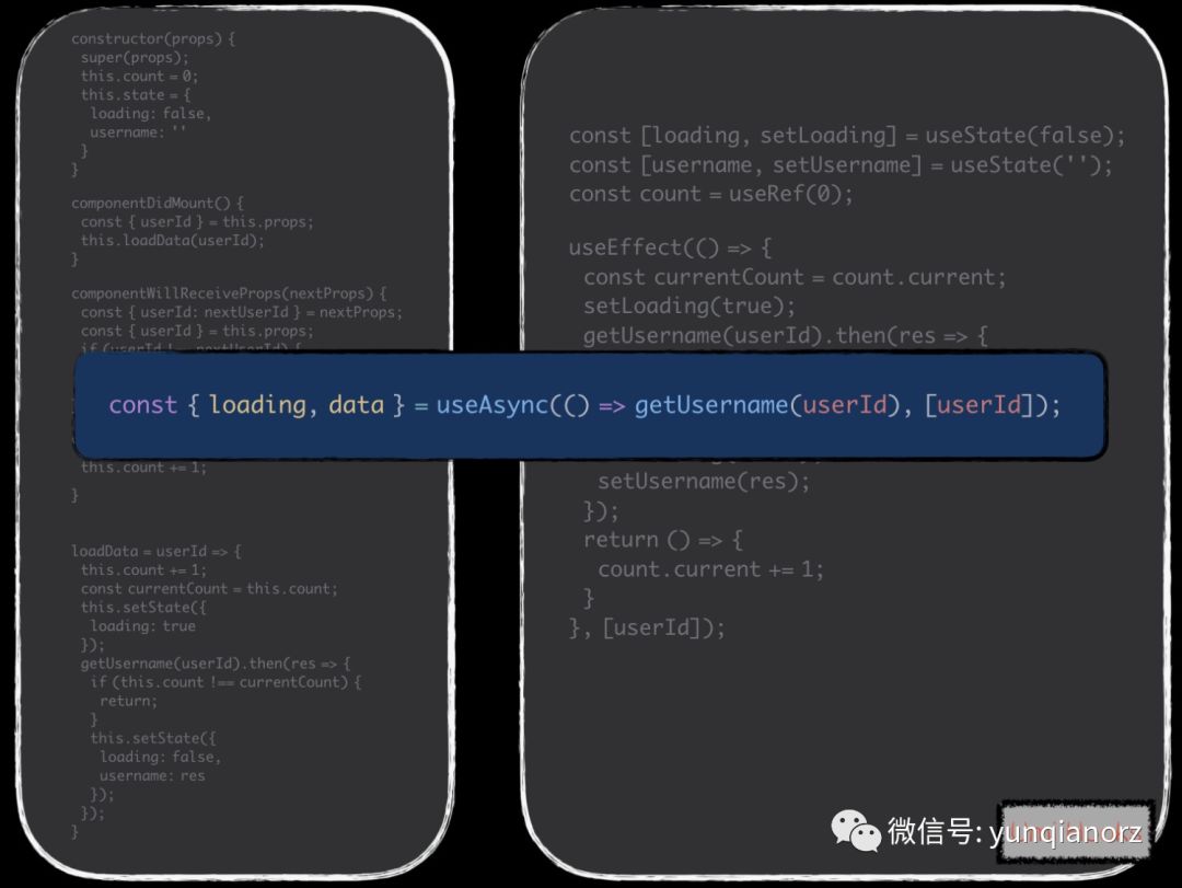 而 Hooks 的业务逻辑就非常聚合了。上面的两个例子,改成 Hooks 你会写吗?
