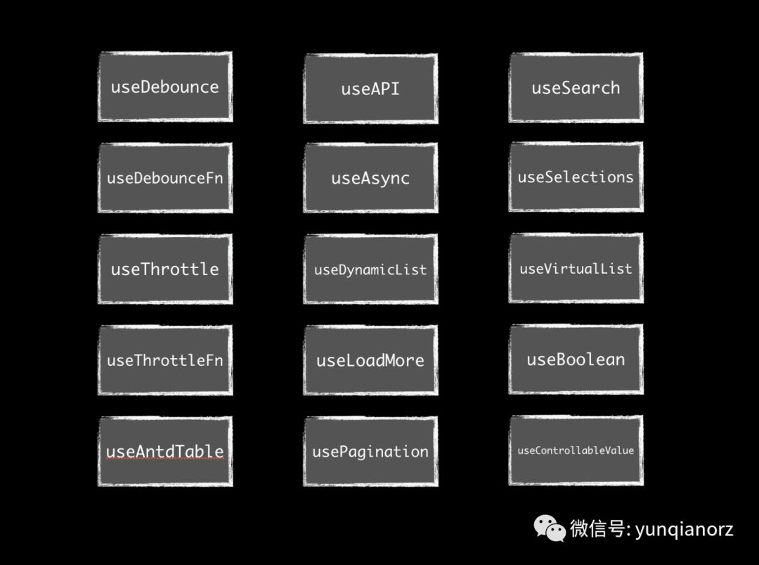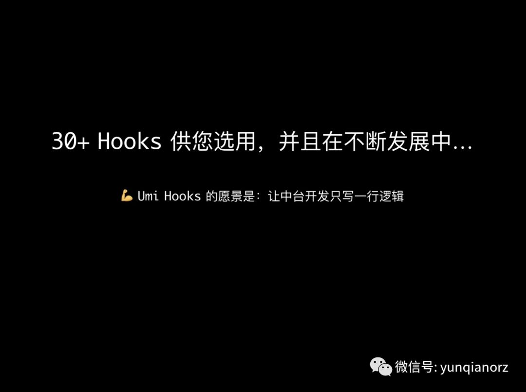 30+ Hooks 供您选择,并且我们仍然处于婴儿期,快速发展中。我们的愿景就是:封装别人的逻辑,让别人无逻辑可写。