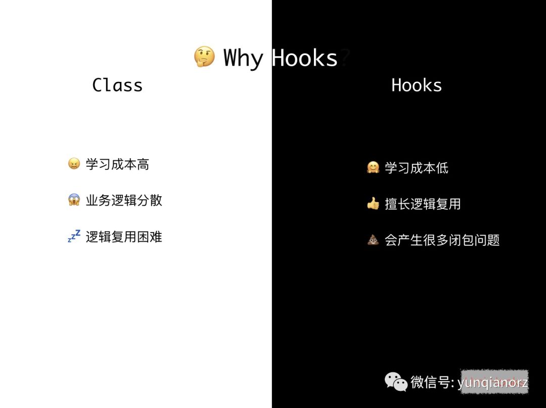为什么要放弃 Class,转用 Hooks 呢?在内部外部有很多争论,包括知乎也有类似提问。我们也不免俗套的要对比下 Class 和 Hooks 了。当然为了保证今天的分享效果,我肯定会偏向 Hooks 的(哈哈哈哈)。